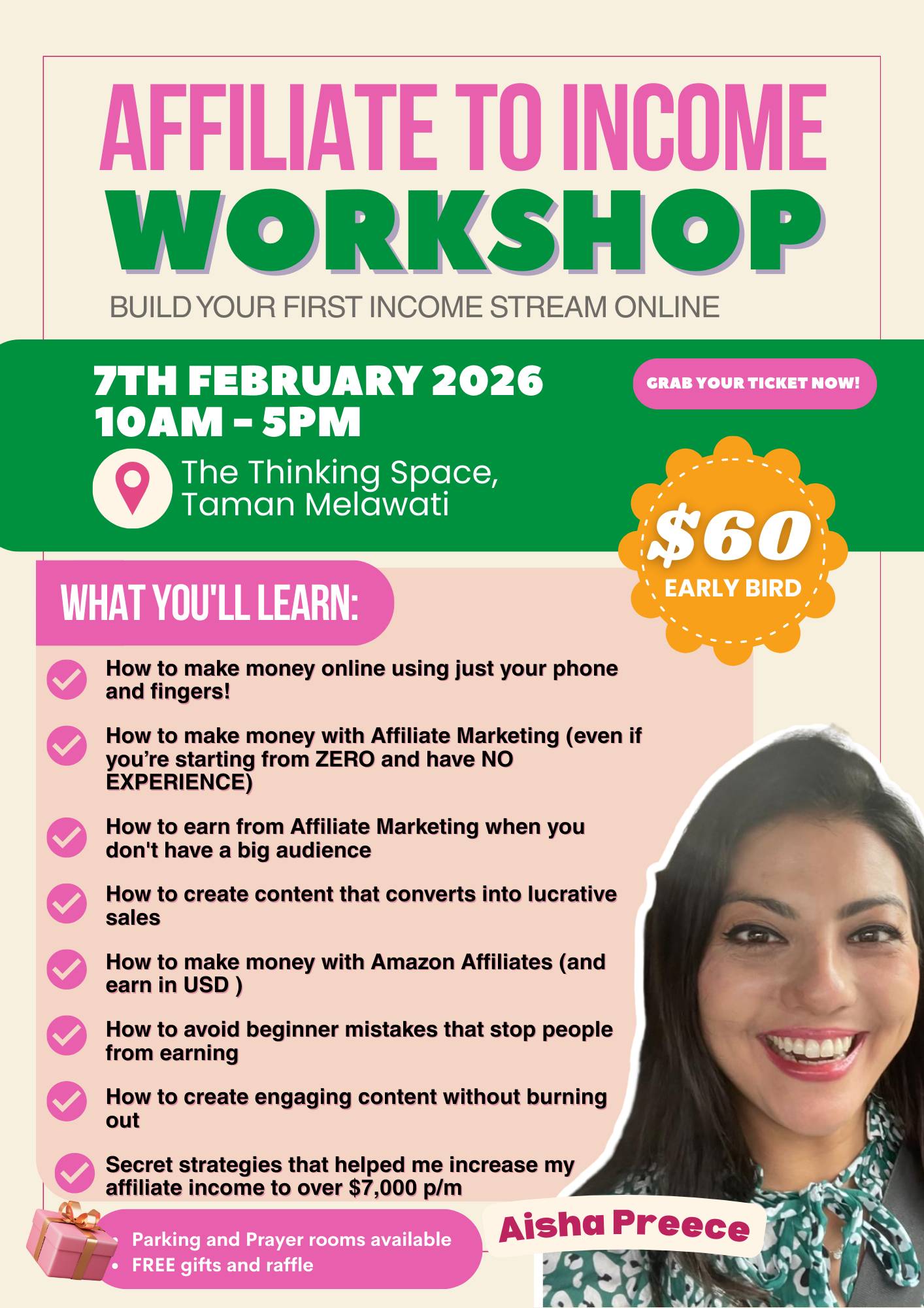 Hi Friend, I meant to write this email last year, mostly to say thank you for being here (but it never got sent because life got in the way!). Thank you for sticking with my sometimes sporadic, sometimes incessant emails, and thank you for supporting my little business by buying my courses, training, and coaching! Sometimes, I feel like being a new mom makes me unrelatable to you And it stops me from writing and sending you what's on my mind :( You've known me as someone who loves working, making money online, and traveling the world while working remotely. But now, I only manage to run my blogging business working a few hours a week.... because I genuinely have no time. I am looking after my daughter full-time, and she's so small! (of course, this limits my earning potential and business growth) I feel like I am hanging on by a thread, but I remind myself, it's only temporary, and I can resume working more when shes a little bigger. With all this in mind, I thought I'd share what I am working on in the few hours I have. I hope it can show you, it's possible to keep plodding on, and success doesn't need to be big jumps in income and growth- it can also mean consistently doing work that moves you forward. 1- I am running an in - person workshop on how to make money online with just your phoneThe biggest lesson being a mom taught me about business? ... You don't have TIME or CAPACITY to log into your laptop and work Sometimes it's PHYSICALLY IMPOSSIBLE, as you have a baby on your lap needing your attention Solution: Work from your phone and make money from your business... using just your phone 90% of the time! Over the last year, I've managed to run my blogging business using mostly my phone. And it's continued to earn despite the shift in tools. So I want to teach moms and busy people who want to earn money online using just their phones, how I do it.